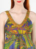Детали: v-образный вырез, на широких бретелях, отрезной лиф, спереди завязывается на бантик, украшен бисером и золотистыми нитями