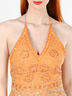 Детали: бретель-петля на шелковистых завязках, лиф дополнен плотными чашками, сзади затягивается на шнуровку, украшен вышивкой, бисером и пайетками