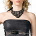 Стильный топ без бретелей из мягкого трикотажа, лиф стилизован под состаренную кожу и подчеркнут застежкой с цепями. От лифа заложены красивые складки.