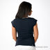 Элегантный топ приталенного силуэта отлично подойдет для повседневно носки и вечернего отдыха. Декорирован оригинальной надписью и маленьким бантом красного цвета.