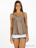 Комплект состоящий из двух маек-борцовок расклешенного кроя из трикотажной ткани. На верхнем топе на спинке вставка из трикотажа в рубчик.