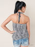 Завораживающе и сексуально выглядит топ «Зарина» из нежного трикотажного материала, надев который вы обязательно привлечете всеобщее внимание. Особую пикантность ему придает американская пройма и колоритный бант над линией спины, служащий завершением оригинального выреза горловины.