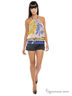 Комбинированный топ на одной регулирующейся бретели, с открытой зоной спины и декольте. Верх- шелковый топ на подкладе, декорированный контрастным разноцветным принтом. Низ топа - широкая стрейчевая кокетка.