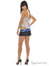 Комбинированный топ на одной регулирующейся бретели, с открытой зоной спины и декольте. Верх- шелковый топ на подкладе, декорированный контрастным разноцветным принтом. Низ топа - широкая стрейчевая кокетка.