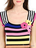 Детали: короткий рукав дополнен двумя оборками, полочка декорирована тканевыми цветами