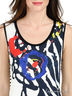 Детали: округлый вырез горловины и проймы дополнены трикотажными лентами