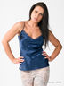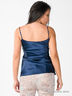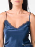 Атласный топ на тонких регулируемых бретельках. Есть вытачки. Украшен кружевом.