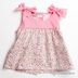 Свободная модель на лямках застегивается на спинке на пуговицы по всей длине изделия. Изделие украшено принтами, сборками и двумя декоративными бантиками.