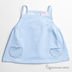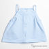 Расклешенная модель на бретельках застегивается на пуговице на спинке по всей длине изделия. В проймы вставлены резинки. Два накладных кармана в виде сердечка на подоле.