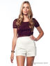 Стильный топ с короткими рукавами и округлым вырезом горловины. Модель укороченного кроя дополнена вставками из гипюра. Отличный вариант на каждый день.