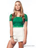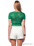 Стильный топ с короткими рукавами и округлым вырезом горловины. Модель укороченного кроя дополнена вставками из гипюра. Отличный вариант на каждый день.