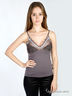 Легкий эластичный топ. На тонких регулируемых бретельках, V-образный вырез, украшен ажурным кружевом с контрастными ленточками.