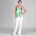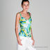 Яркий топ на бретелях, сзади широкая вставка на резинке. Линия талии завышена, лиф с запахом.