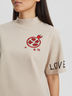 Топ женский «Garnet» от бренда Barmariska, выполнен из плотного трикотажного полотна джерси. Модель свободного кроя со спущенной линией плеча и воротником-стойкой. Рукава прямые, широкие, длиной выше линии локтя. Дизайнерский принт на груди и рукавах выполнен методом шелкографии и дополнен брендированной нашивкой.