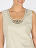 Топ из трикотажной ткани без рукавов. Декоративный элемент на вырезе из пайеток и бисера.