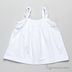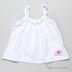 Модель свободного кроя. Бретельки и верх полочки укршаены пришитыми рюшами. На подоле полочки аппликация и паетки.