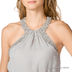 Открытый топ,из шелкового шифона с эффектом креш. Круглая горловина и бритель на спинке вышиты крупными бусинами в цвет изделия. По линии талии выполнена кулиска с завязками.