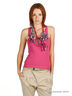 Трикотажный топ прямого кроя. Бретельки перекрещиваются сзади. В комплект с топом идет оригинальное колье.