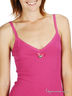 Трикотажный топ прямого кроя. Тонкие регулирующиеся бретельки. V-образный вырез горловины.