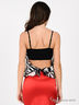 Детали: тонкие, регулируемые по длине бархатистые бретели, верхняя часть изделия присборена на резинку в области талии, завязывается на спине на ленты
