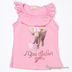 Детали: круглый вырез окантован оборкой; на полочке оригинальная аппликация со стразами
