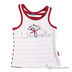 Майка для девочки. Эластан в составе трикотажа обеспечивает прекрасную посадку по фигуре. Комбинация глади и полоски, контрастный кант, яркий веселый принт создает летнее настроение.