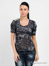 Замечательный топ с короткими рукавами и округлым вырезом горловины. Плечики с погонами на липучке, декорированными бисером, рукава с оригинальной драпировкой. Отличный вариант для Вашего гардероба.
