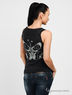 Детали: округлый вырез горловины, спинка декорирована аппликацией бабочка из страз.