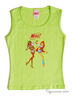 Майка на широких бретелях с округлым вырезом горловины. Спереди изделие декорировано принтом. Отличный вариант для базового гардероба.