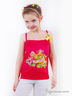 Топ на тонких бретелях с округлым вырезом. Модель выполнена в яркой расцветке и декорирована спереди контрастным принтом. Отличный вариант на каждый день.