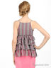 Детали: на тонких бретелях, спереди украшен перламутровыми бусинами, талия подчеркнута тонкой ленточкой, многослойные воланы