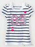 Топ в полоску для девочек с блестящей аппликацией. Модель с короткими рукавами и округлым вырезом горловины.