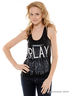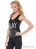 Топ на широких бретелях с округлым вырезом горловины. Спереди модель дополнена контрастным принтом. Отличный вариант на каждый день.