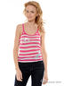 Топ на тонких бретелях с округлым вырезом. Модель выполнена в модной расцветке в полоску. Отличный вариант на каждый день.