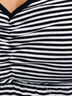 Отличная туника из тонкого эластичного трикотажа в полоску. Окантовка V-образного выреза горловины и пройм переходит в бретели. Отрезной лиф, полочка присборена на резинку. Великолепный вариант для тех, кто ценит комфорт и качество.