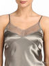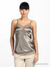 Детали: тонкие регулируемые бретельки, отрезной лиф с V-образным вырезом, верх спинки посажен на резинку, тонкие завязки подчеркивают талию