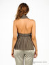 Детали: топ из плиссированной ткани, лямка через шею, под грудью атласная лента, сзади сверху изделие на резинке.