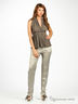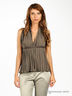 Детали: топ из плиссированной ткани, лямка через шею, под грудью атласная лента, сзади сверху изделие на резинке.