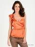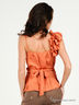 Детали: застежка на пояс из основного материала, по подолу небольшой волан, тонкие лямки, одна отделана воланом, небольшая вставка из металла с логотипом бренда.