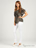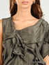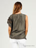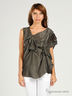 Топ оригинального кроя. Цельнокройный короткий рукав с одной стороны, с другой пройма без рукава. Драпировка спереди. Рукав декорирован шелковыми вставками.