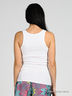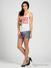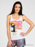 Оригинальный топ прямого кроя из тонкой трикотажной ткани в мелкий рубчик подойдет как для занятий спортом, так и для прогулок. Округлый вырез горловины и проймы дополнены трикотажной лентой в мелкий рубчик. Полочка декорирована ярким набивным рисунком.