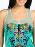 Легкий, воздушный топ прямого кроя из тонкой шелковистой ткани. Округлый вырез горловины и проймы дополнены блестящей трикотажной лентой. Спинка-борцовка и верхняя часть полочки из трикотажной ткани. Низ изделия собран на трикотажную блестящую ленту.