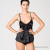 Элегантный стрейчевый топ черного цвета свободного кроя. Чашечки мягкие без уплотнителя с ажурным декором. Спереди принт в виде рисунка и надписи Denny Ros.