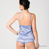Элегантный стрейчевый топ сиреневого цвета свободного кроя. Чашечки мягкие без уплотнителя с ажурным декором. Спереди принт в виде рисунка и надписи Denny Ros.