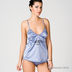 Элегантный стрейчевый топ сиреневого цвета свободного кроя. Чашечки мягкие без уплотнителя с ажурным декором. Спереди принт в виде рисунка и надписи Denny Ros.