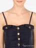Детали: застегивается на пуговицы; тонкие бретели; декоративные клапаны; перед изделия дополнен оригинальной драпировкой