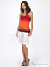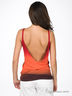 Топ женский трикотажный. Ткань в мелкий рубчик. Глубокий V-образный вырез на спинке изделия. Длина бретелей не регулируется.
