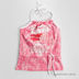 Модель свободного кроя. Лямки завязываются на шее. На уровне талии в изделие вставлен шнурок, регулирующий ширину. Принты на полочке.