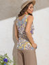 Принтованная блузка прямого кроя из дышащего штапеля. Широкие бретели дополнены пряжками. Пояс из основной ткани в комплекте.