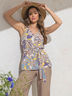 Принтованная блузка прямого кроя из дышащего штапеля. Широкие бретели дополнены пряжками. Пояс из основной ткани в комплекте.